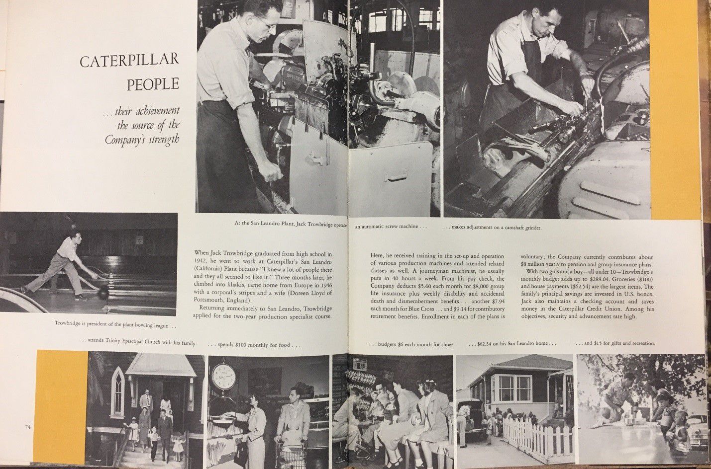 Trowbridge is president of the plant bowling league, attends Trinity Episcopal Church with his family and budgets $6 each month for shoes.”