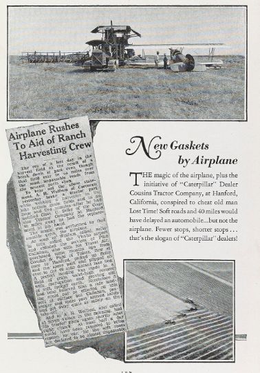 In 1928, “Fewer stops, shorter stops” was the slogan used by Caterpillar and its dealers, and Cousins took it to heart when they arranged for airplane service and delivered the parts the customer needed only one hour after the call came in. Cousins’ approach to service was so revolutionary that the story even made newspapers across California.