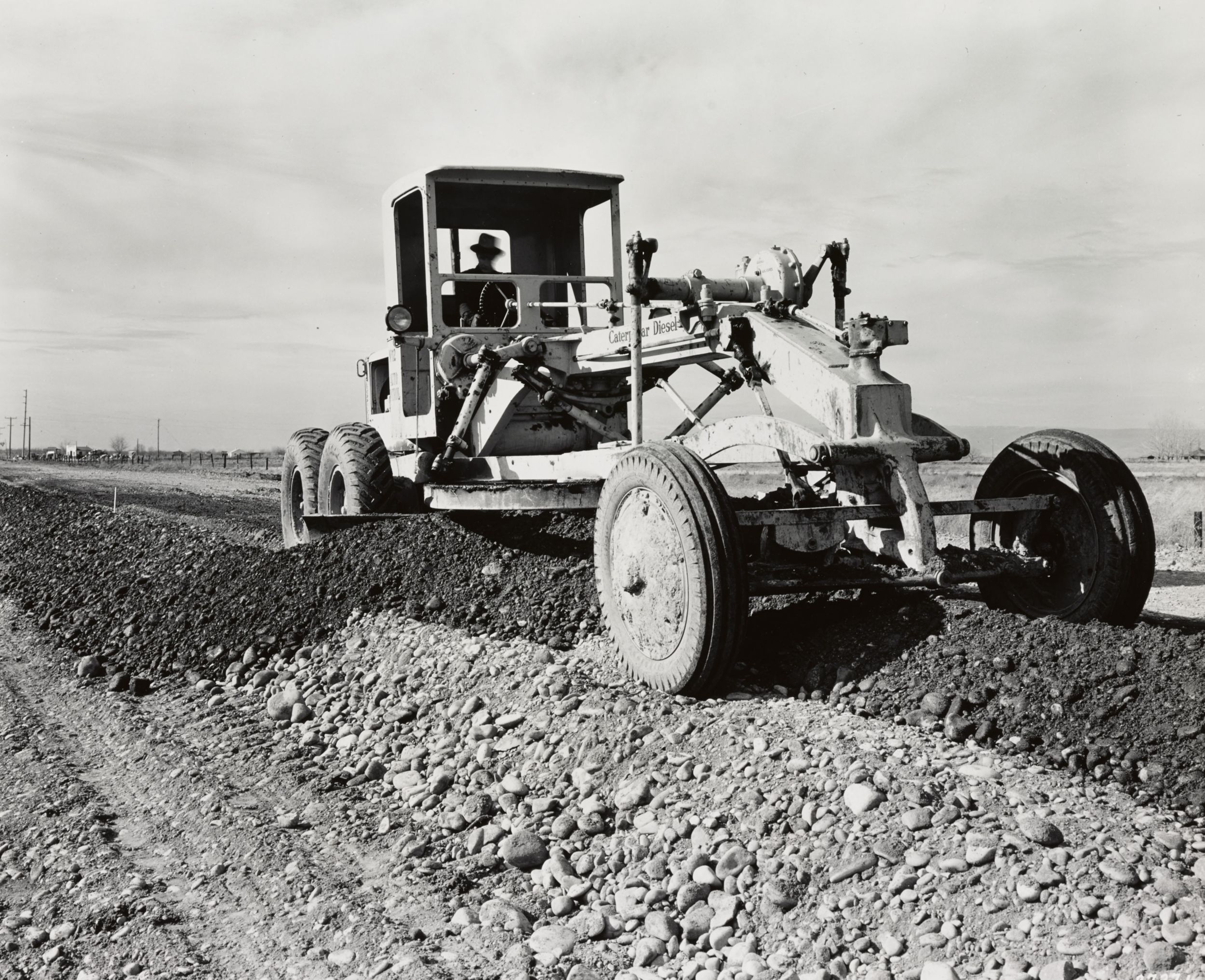 The Caterpillar Diesel No. 12 Auto Patrol was even equipped with two-speed powered mechanical blade controls. A simple shift of a lever gave the operator faster control for the longer blade movements required by coarse work. For close finishing work, a slower control setup provided extreme accuracy in blade settings.
