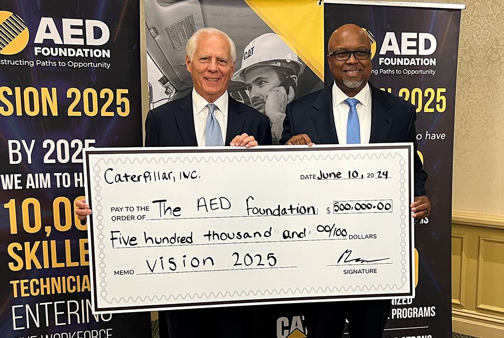 IRVING, Texas, June 11, 2024 – Caterpillar Inc. (NYSE: CAT) today announced a $500,000 donation to the Associated Equipment Distributors Foundation (AEDF) in support of AEDF’s Vision 2025 Campaign. The campaign is designed to address the technician shortage within the equipment distribution industry. It is also focused on strengthening the industry’s future by improving programs offered to students across U.S. high schools and technical schools considered underserved in the technical skills space.