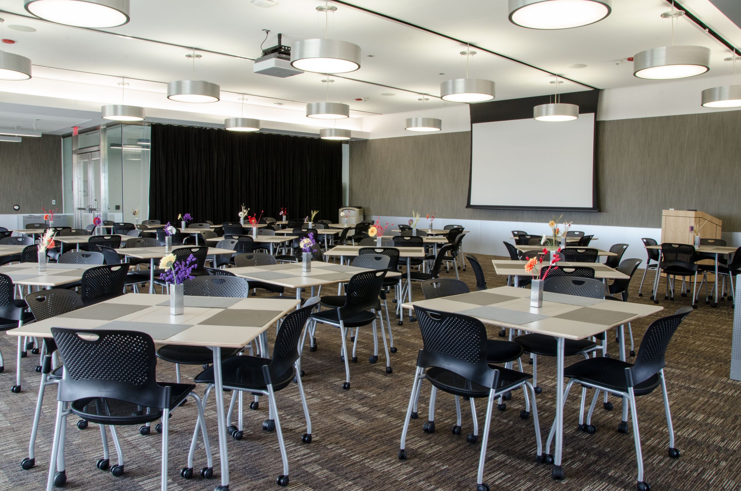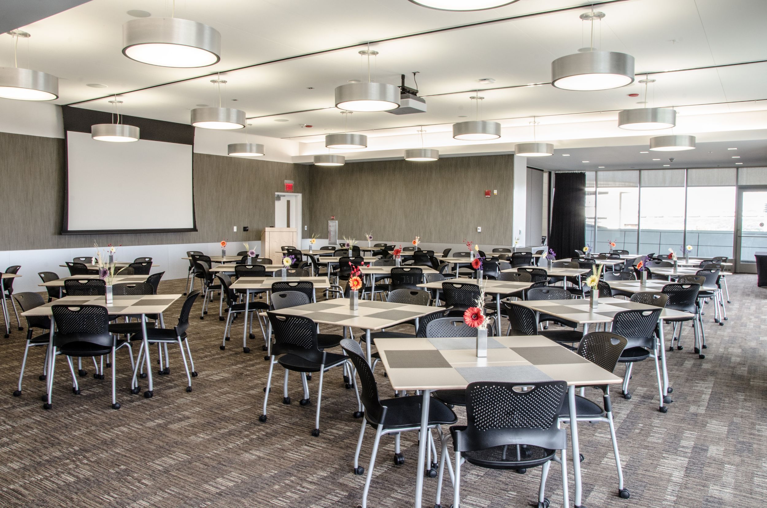 最大104名を収容するダイニングルームは、屋外バルコニースペースを備え、着席スタイルのイベントやレセプションに最適です。