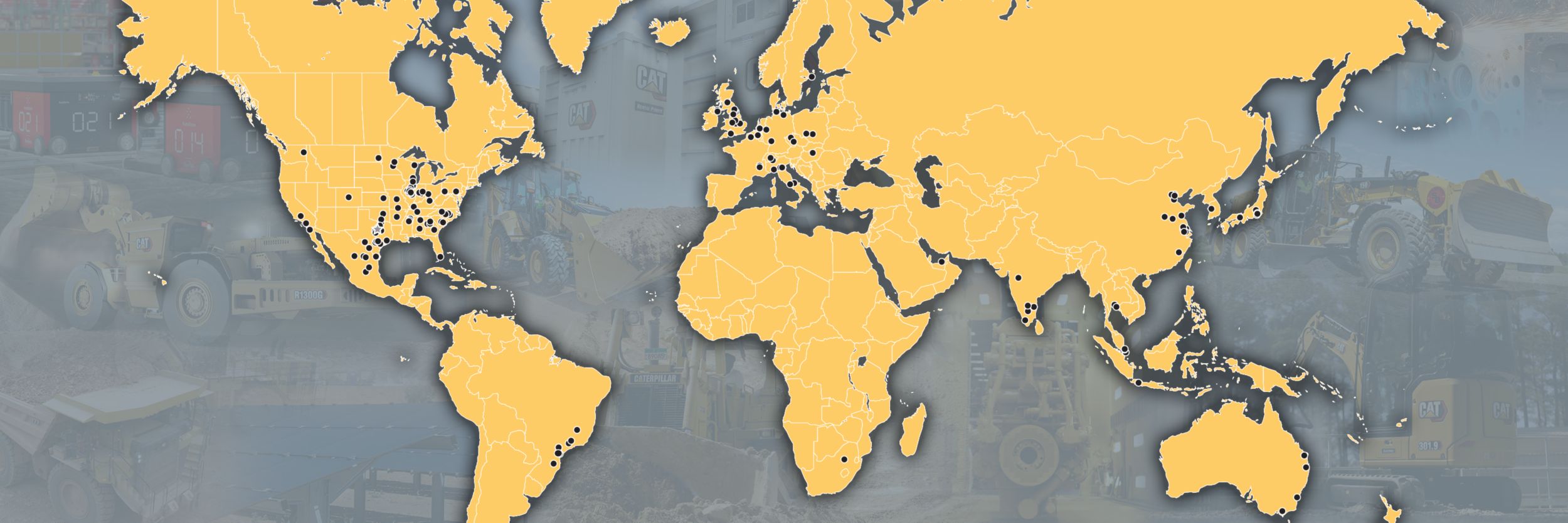 O alcance e a presença global da Caterpillar são incomparáveis no setor. Com sede em Deerfield, Illinois, EUA, atendemos clientes em todo o mundo. Nossas unidades de manufatura, marketing, logística, serviços, pesquisa e desenvolvimento e instalações relacionadas, juntamente com os locais de revendedores, totalizam mais de 500 locais em todo o mundo.