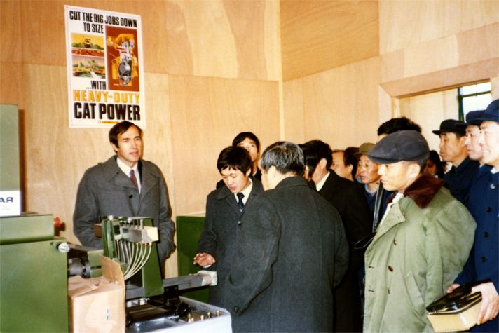 十几面彩旗林立并随风舒展摆动。一条大红色的,长达2、3米的绸带,中间缀着一朵硕大的花结,旁边一队队男男女女,老老少少,中间还穿插着当时极为少见的金发碧眼的外国人……这里是卡特彼勒早期在中国的又一家维修服务中心剪彩开幕的现场。