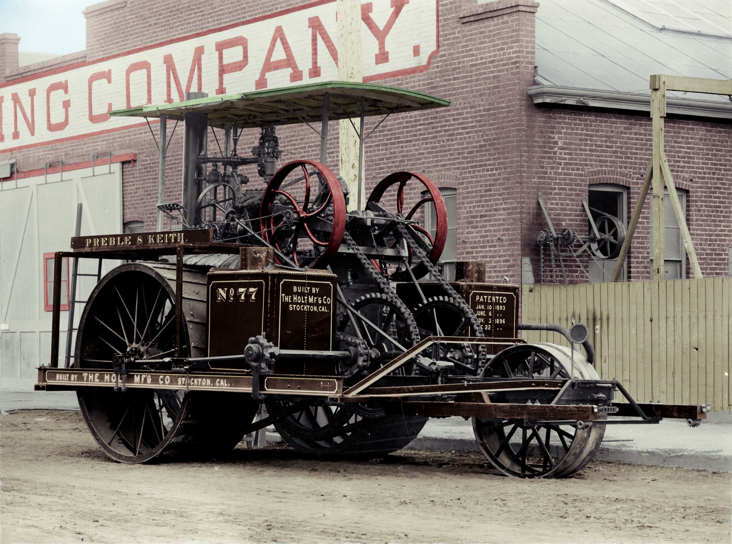 在 19 世纪末利用马匹为农业生产提供动力的时代,加利福尼亚州的农民努力寻求更好的新式农作方式。Benjamin Holt 受到交通运输行业创新的启发,于 1890 年发明了一种蒸汽拖拉机,相比使用马匹耕作,农民使用此种机器可以更高效地工作更长时间,并且成本更低。随着蒸汽动力机械在农业应用中的接受程度日益提高,Holt 继续创新以解决客户的各种难题。其公司制造的蒸汽式机器由于体积庞大,因此车轮容易陷入加州松软的土地中。为了解决这个问题,Holt 于 1904 年在一台旧款轮式拖拉机上安装了履带,第一台真正的“Caterpillar”就这样诞生了。