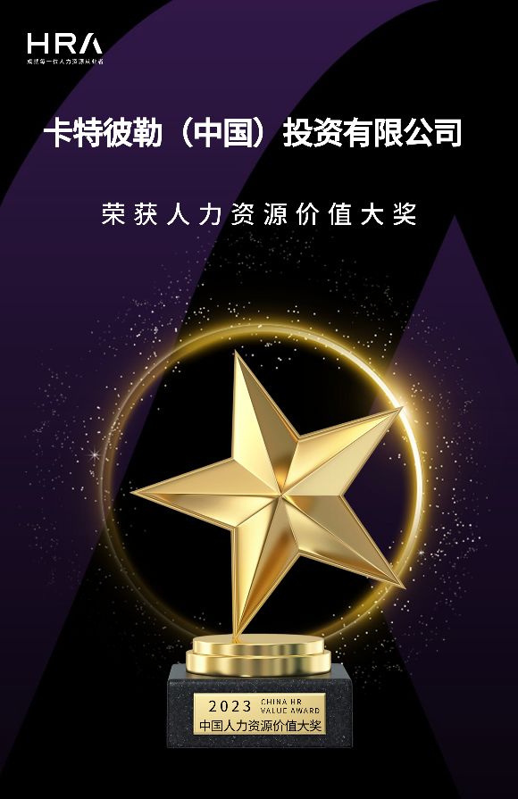 2024年1月,卡特彼勒(中国)投资有限公司荣获中外企业人力资源协会(HRA)评选的“中国最佳雇主奖”和“人力资源价值大奖”。凭借多元化、包容性和员工关怀并具的企业文化,卓越且现代化的人力资源管理方式,以及雄厚的本土业务体量,卡特彼勒(中国)投资有限公司从上百家企业中脱颖而出,荣获了这两项2023年度人力资源价值优秀案例榜单大奖。